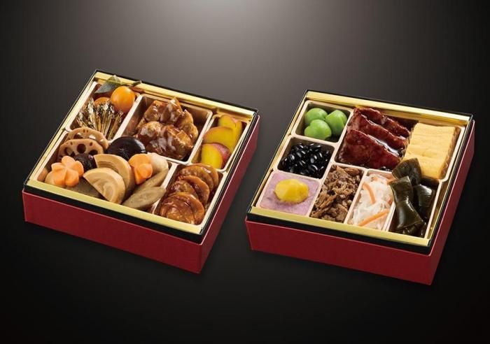 商品内容 [壱の重] ぶりの照り焼き、烏骨鶏卵入りだし巻き玉子、飛騨牛しぐれ煮、若桃の甘露煮、丹波黒豆、柿入り生酢、昆布巻、紫芋きんとん、栗甘露煮